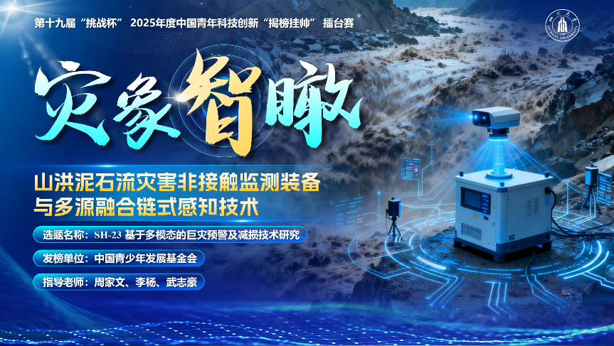 由周家文、李杨和武志豪指导,鲜昭、周洋、周灵姗等同学负责的“灾象智瞰——山洪泥石流灾害非接触监测装备与多源融合链式感知技术”项目荣获全国特等奖。项目聚焦山洪泥石流突发性强、破坏性大,而现有监测预警手段存在监测覆盖盲区大、监测维度单一、“前兆信号”捕捉不足等痛点,提出“非接触监测+多源融合”的链式感知体系,方案贯通“前兆—演进—预警”全链条,相较传统单点监测,多模态信息更充分、抗毁性更强、无人区持续运行能力更优,显著提升预警准确性与提前量,为防灾指挥提供实时、可靠的数据支撑,助力我国防灾减灾体系高质量发展。