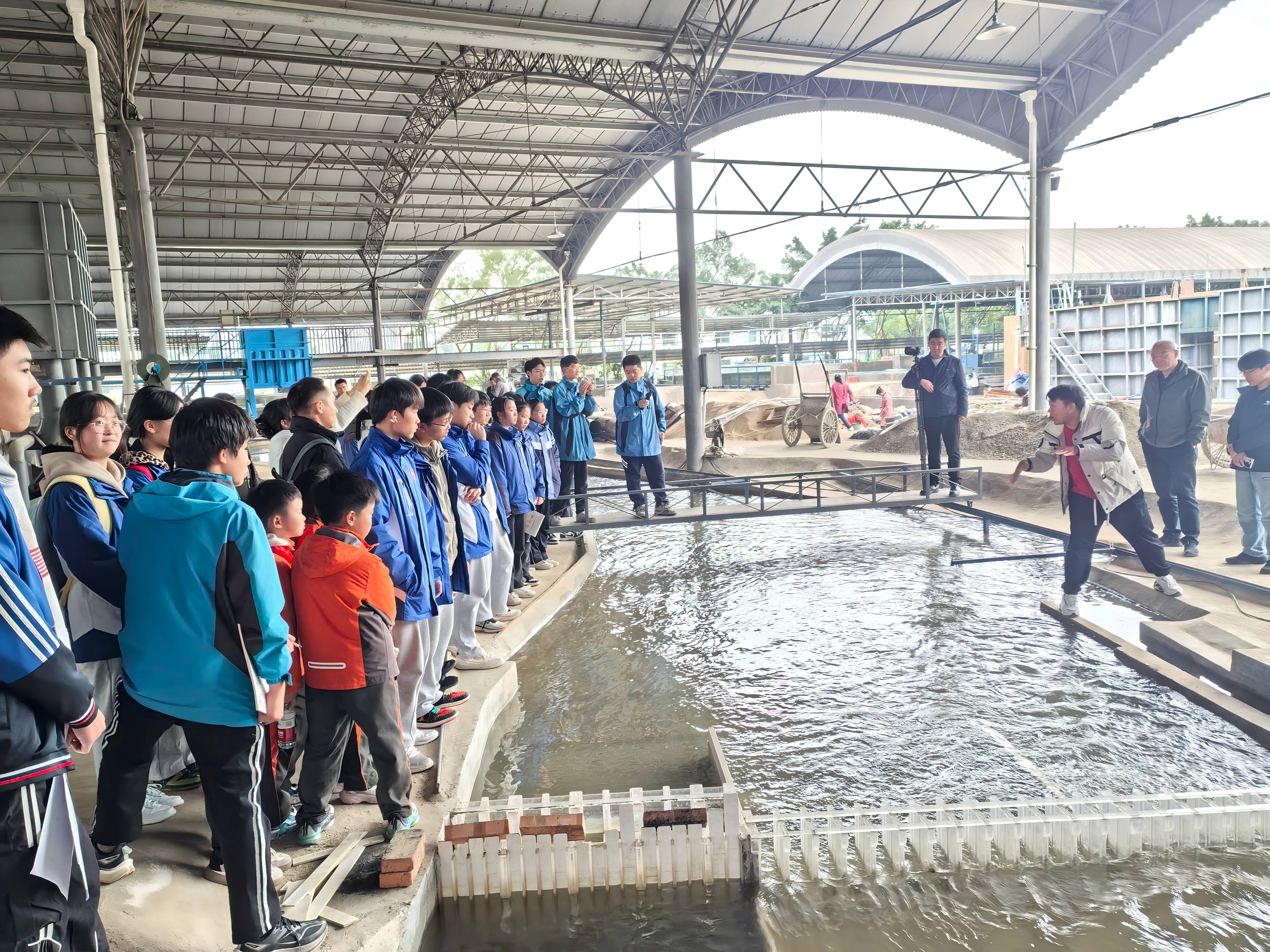 的水力模型试验场。刘博士现场演示河流生态保护相关的科研试验,讲解试验原理与应用价值,同学们受益匪浅。