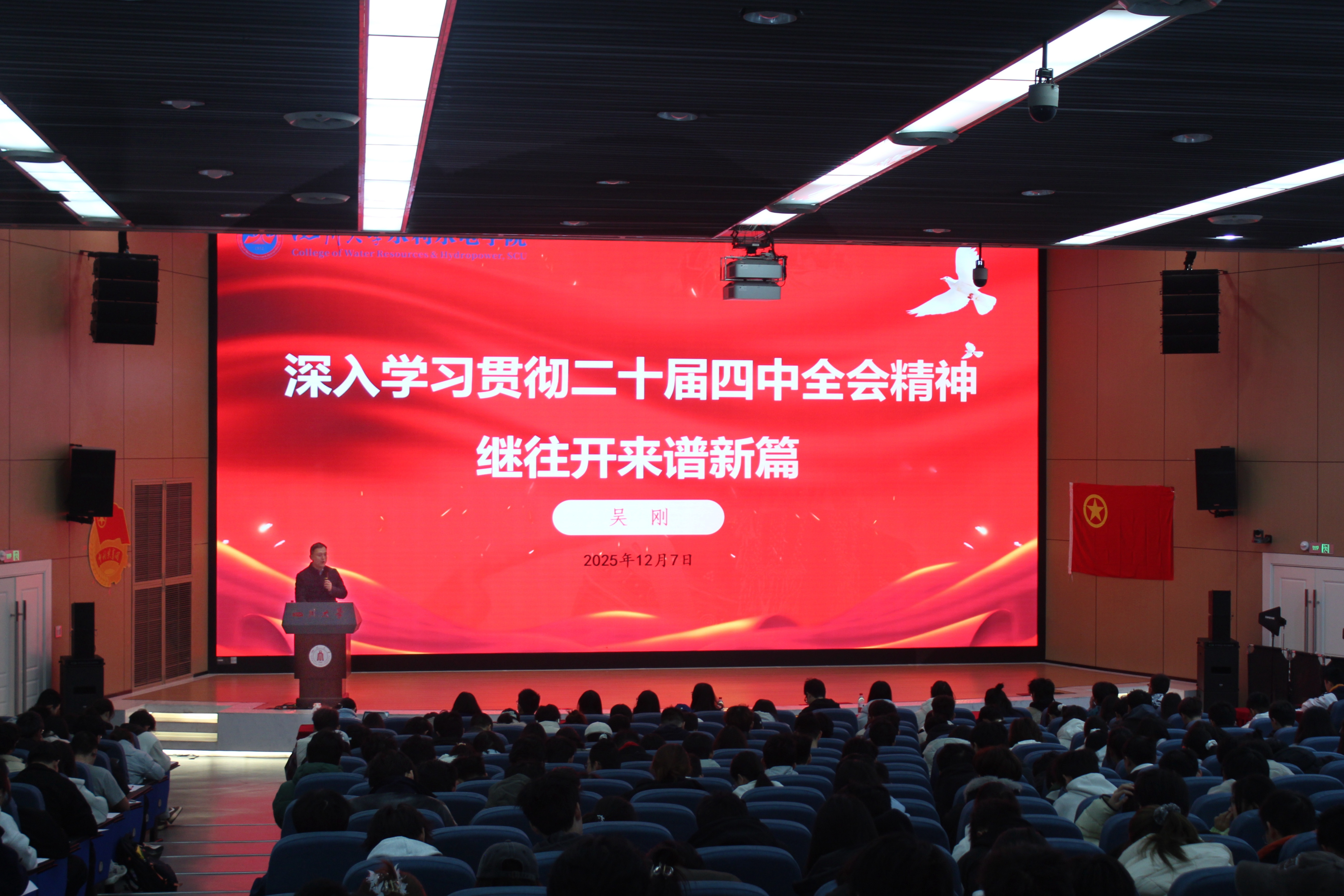 齐唱团歌后,吴刚老师以“深入学习贯彻二十届四中全会精神,继往开来谱新篇”为主题授课。课程聚焦全会核心内容与战略意义展开,系统回顾了“十四五”时期国家及水利水电领域和成人影视片